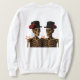 A premium gothic Halloween hoodies featuring two realistic skeletons in stylish top hats adorned with roses. The perfect spooky-chic apparel for Halloween parties or everyday gothic fashion.