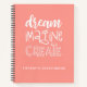 This personalized girly 8.5 x 11 sketchbook has white text on a coral colored background. The words, "DREAM,IMAGINE,CREATE" in a hand drawn font personalized with your name below. Customize the sketchbook with the name of your choice to make someone feel extra special. Makes a fun gift for birthdays or for Christmas. Comes in a variety of colors. Designed for you by Blackberry Boulevard.