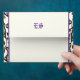 Elegant skulls Halloween purple wedding envelope, featuring a black skull couple bride and groom on ivory background and a skull pattern border. The groom wears a purple hat and the bride a purple bow. Want help or a different color scheme? Just click on Contact button under the product and ask for it!