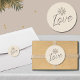 Elevate your holiday gifting and correspondence with a touch of sophistication using this captivating round sticker. The light backdrop showcases a brushed champagne gold snowflake at the top, evoking the enchantment of the season. Below, the word "Love" is elegantly scripted, embodying the spirit of affection and connection that defines this special time of year. Adorn your holiday cards, packages, and envelopes with this charming sticker to add a heartfelt sentiment and a dash of elegance. Whether you're sending warm wishes to loved ones or decorating your festive parcels, this sticker is a delightful way to express your feelings and share the joy of the holiday season.