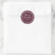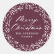 Seal Christmas presents, favor bags, and holiday envelopes with festive Merry Christmas stickers. The holiday stickers feature "Merry Christmas" displayed in a white calligraphy script encircled by a wreath of snowflakes and pine branches on a berry purple background. Personalize the stickers by adding your family name or custom text.