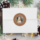 Add a festive touch to your holiday envelopes with our Elegant Snowflake Wreath return address labels. The holiday return address stickers feature your photo encircled by a wreath of white snowflakes and pine branches with a gingerbread-colored background. Your last name and return address are displayed on the outer edge of the round holiday stickers in white lettering.