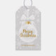 An elegant white Christmas tree ornament on a light gray background filled with snowflakes, these gift tags are perfect for any occasion. MATCHING items in our store.