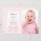 Elegant Soft Pastel Pink Bow First Birthday Photo Invitation