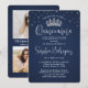 Elegant Sparkles Quinceañera 3 Photo Navy Blue Invitation