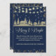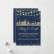 Elegant Sparkling Navy Blue Gold Winter Village Holiday Card
