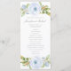 An elegant, modern floral wedding program with a beautiful arrangement of watercolor flowers in tones of dusty blue and peach. We can customize the flower colors to match your wedding theme; just reach out to us at modernmatrimony(at)gmail(dot)com and allow a week for customization.