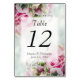 Elegant Spring Pink Roses on Teal Floral Wedding Table Number