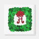 A pretty wreath with lots of bright colored greenery accented by an elegant red Christmas bow.