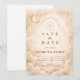 A refined celestial design featuring delicate crescent moons, scattered constellation stars, and a warm parchment-toned background. A thin gold border frames the layout, while elegant typography creates a timeless, sophisticated composition. The subtle vintage texture and balanced spacing give this piece a romantic, storybook feel without overwhelming the details. Perfect for couples who love classic elegance with a soft cosmic touch.