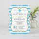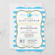 It's a boy! Elegant sky blue and lime green toy stitched helicopter baby shower invite on bright sky blue and white stripes pattern with vintage formal look. Great for boy aircraft, helicopter theme baby showers; perfect for spring showers. Retro bracket shape invitation.