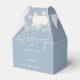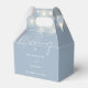 This elegant dusty blue wedding favor box, featuring pretty string lights, can be personalized with your information in chic typography. Designed by Thisisnotme©