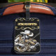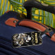 A touch of elegance and adventure—a lighter with a white and gold violin and a finely detailed cowboy design