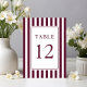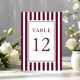 Elegant Striped Burgundy Wedding Table Number.