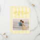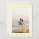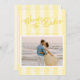 Announce your wedding date with our modern but elegant wedding Save The Date card in an oh-so-pretty shade of butter yellow. This design features preppy stripes in alternating shades of butter yellow on the front and back, which lend an elegant, chic touch, while still being fresh and trendy. The design features "Save the Date" written in a classy calligraphy script with a nostalgic, vintage feel and a touch of whimsy. You are sure to wow your loved ones with this unique save the date card!