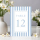 Elegant Striped Powder Blue Wedding Table Number.