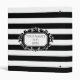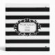 A chic binder with a black and white horizontal striped pattern on it. Add your text on the vintage label on both sides.