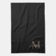 Modern Stylish Elegant Black Gold Monogram Script Name Kitchen Towel