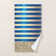 Elegant Stylish Blue Gold Stripes Glitter Shiny Bath Towel Set