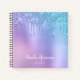 This pretty notebook design features faux blue & purple dripping glitter metallic texture and elegant calligraphy font.
