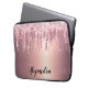 This pretty laptop sleeve design features faux pink & copper rose gold dripping glitter metallic texture and elegant calligraphy font.