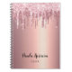This pretty notebook design features faux pink & copper rose gold dripping glitter metallic texture and elegant calligraphy font.