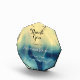 This elegant and stylish custom award trophy features a close-up image of a beautiful piece of polished blue agate geode showing the intricate wavy veins and crystal structures of the gemstone in various shades of sapphire blue and cream. Through customization the current greeting and messages on this beautiful award may be replaced with a personalized greeting.