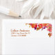 These return address labels feature a beautiful watercolor image of bright, colorful flowers in coral pink, violet, gold and red tones.