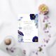 Beautiful artist design hand painted summer floral watercolor wildflowers with elegant gold foil and navy blue elegant typography script wedding invitation. Ideal for a spring or summer wedding. Botanical themed wedding stationary with spring and summer flowers including cosmos, cornflowers, poppies and forget me nots with foliage. Easy to use template and perfect for a unique botanical themed wedding with navy blue, powder blue, purple and green hues. Unique original artwork by artist Catherine Sweetman.