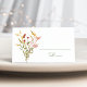 Elegant floral wedding place card featuring a bouquet of watercolor wildflowers and foliage in shades of pink, yellow, red, and green with a white background. The boho wildflower place cards reverse to display your names and wedding date inside of a rectangle frame of wildflowers. The beautiful wildflower wedding place cards are perfect for spring and summer weddings.