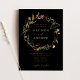 Elegant Summer Wildflower Wreath Black Wedding Foil Invitation