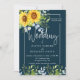 Elegant Sunflower Calligraphy Navy Blue Wedding Invitation