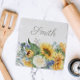 Add your family name to this custom trivet designed with beautiful yellow sunflowers and other gorgeous white floral and greenery. Text is an elegant script font, but customizable to any font from among Zazzle's huge selection.