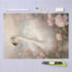 1 of 2 IMAGES THAT COORDINATE, RIGHT SIDE DOOR SWAN 1A. Exquisitely painted swan with pale blush pink waterlilies on a pond with a sky that has an ethereal glow. Crackle texture softly enhanced by script handwriting ephemera that is layered on top. MSP0123-01A