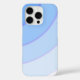 Protect your iPhone 16 in style with this sleek and sophisticated phone case, featuring a graceful swirl pattern. Half-circle cascades flow seamlessly across the surface in a fading ombre with a Blue and white, with a purple accent line.