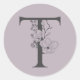Elegant T Boho Floral Monogram Initial Lilac Gray Classic Round Sticker