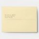 This wedding envelope features a minimalist design with a clean, centered layout on a soft cream background. The muted taupe text is printed in an elegant serif font, creating a sophisticated and timeless look. Perfect for conveying essential information, the ample negative space enhances readability while maintaining a refined aesthetic. Ideal for weddings, this envelope combines simplicity with a touch of elegance, making it a versatile choice for any formal occasion.