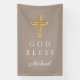 Custom Name Elegant Taupe Religious Cross Boy God Bless Banner.