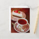 This elegant postcard captures a cozy tea moment with a delicate slice of strawberry cake and a warm cup of tea served on vintage-style china. The rich colors and classic composition create a refined, timeless atmosphere, perfect for those who appreciate simple pleasures and beautiful details.