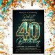 Elegant Teal and Gold 40th Birthday Celebration Invitation