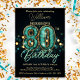 Elegant Teal and Gold 80th Birthday Celebration Invitation