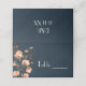 This simple wedding place card is so elegant, minimal floral details in burnt orange contrast beautifully with the rich dark navy watercolor textured background. Thin yet elegant san serif font on white typography complete the design. Ideal place card for an elegant fall wedding.