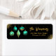 Add a touch of holiday glamour to your seasonal mail with this elegant Christmas address label. Featuring a rich black background adorned with sparkling teal blue and gold ornaments and twinkling stars, this design blends festive charm with modern sophistication. The family name is styled in graceful script, while the address is presented in a clean, easy-to-read font - perfect for holiday cards, party invitations, or seasonal packages.
