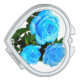 Elegant teal blue roses blue floral blue flowers compact mirror