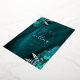 This elegant wedding invitation features teal blue floral bouquets set off with silver faux foil greenery in two corners, on a background image of teal watercolor agate. The customizable text combines real silver foil serif, italic and handwriting fonts. The reverse side features a matching teal and silver floral and agate design.