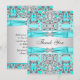 Teal blue and silver thank you card. This pretty teal blue flat style thank you card can be customized or left blank to add your handwritten message. Please note - all of the invitation designs you will find on Zazzle are printed graphics on flat paper stock with no actual jewels, bows, raised, embossed, or added parts or pieces.