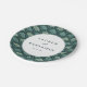 This elegant wedding plate features a circular centerpiece with a repeating botanical pattern in shades of green and subtle pink accents, creating a nature-inspired theme. The central text is framed by a thin black border, showcasing customizable names and date in a classic serif font that adds a touch of sophistication. The design blends organic motifs with muted colors for a timeless look, perfect for celebrating your special day. Ideal for weddings, this plate combines visual harmony with functional elegance, making it a beautiful addition to any event table setting.