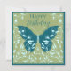 Elegant Teal Butterfly With Vines Happy Birthday Note Card