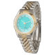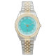 This is a classy watch with a bright faux foil teal background at the center. A semi transparent border frame holds the black numbers, and your three letter monogram is also in black at the bottom. Elegant, and personalized, too!