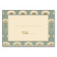 This elegant wedding place card design features a delicate floral pattern with soft, pastel hues of teal and cream. The primary motifs are large, stylized flowers that create a romantic and sophisticated atmosphere. The typography is gracefully cursive, adding to the refined aesthetic. Perfect for a spring or garden-themed wedding, this design exudes charm and timeless elegance, inviting guests into an enchanting celebration. Customizable text areas allow for personalization, making it versatile for any special occasion.